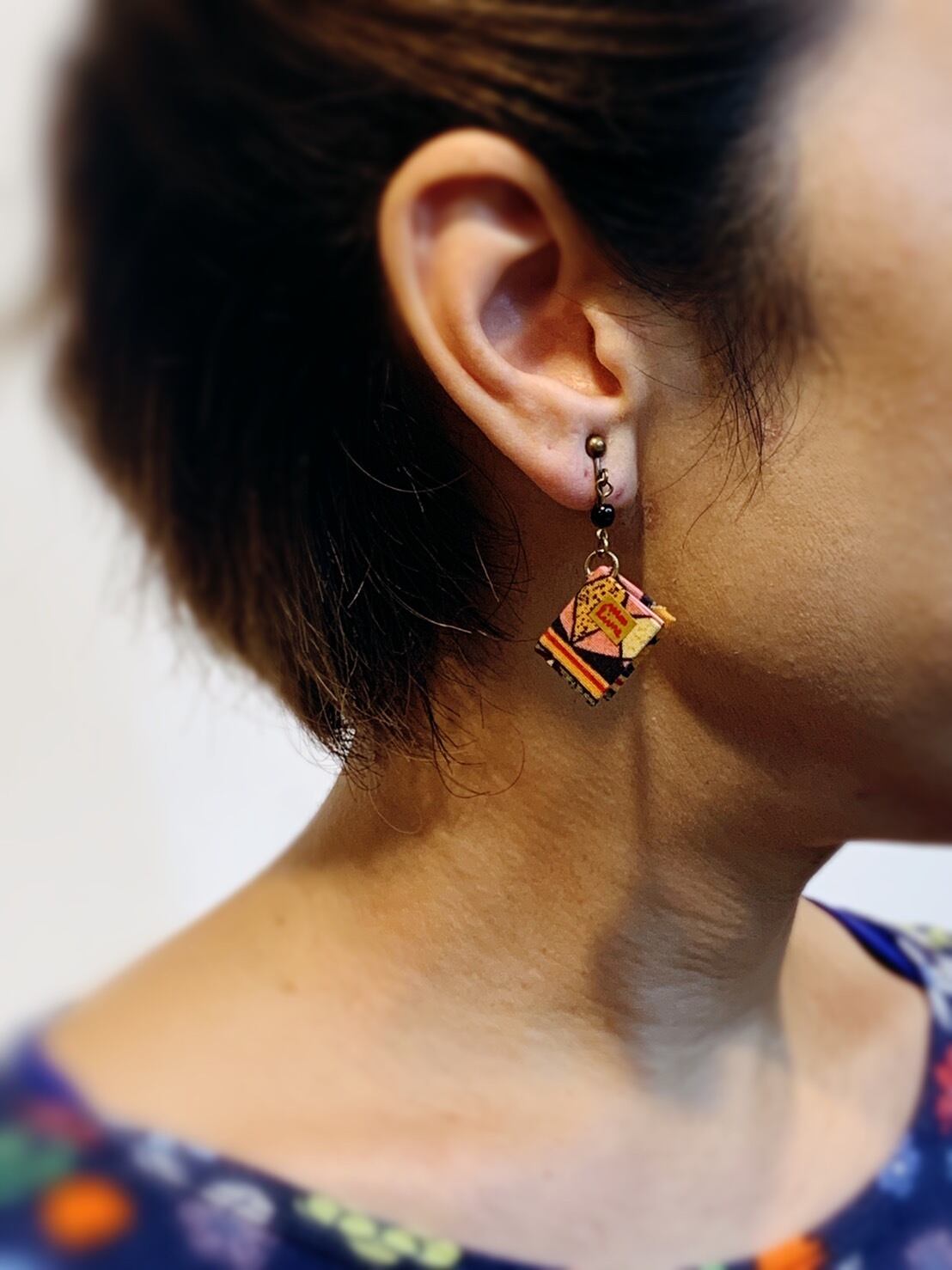 幾何学柄の布本イヤリング【手作り】【1点物】ギフトにも最適