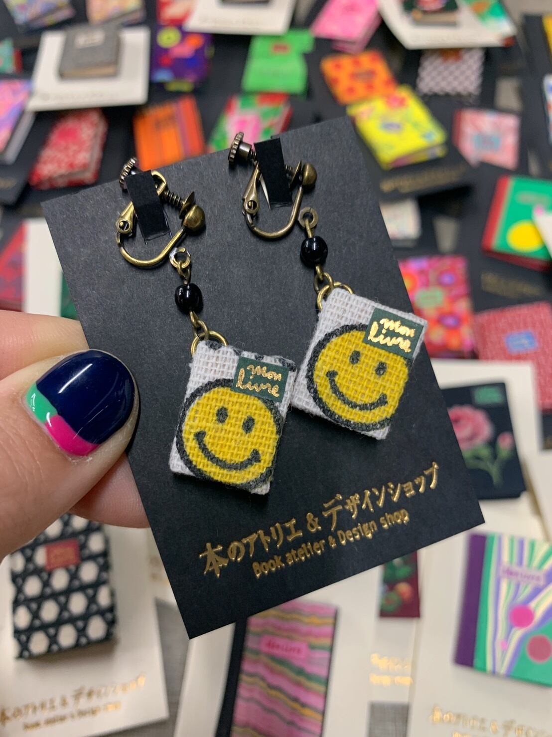 ニコニコ柄の布本イヤリング【手作り】【1点物】ギフトにも最適