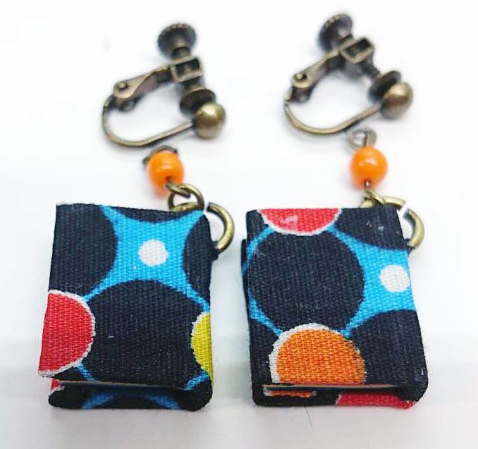 幾何学柄の布本イヤリング【手作り】【1点物】ギフトにも最適