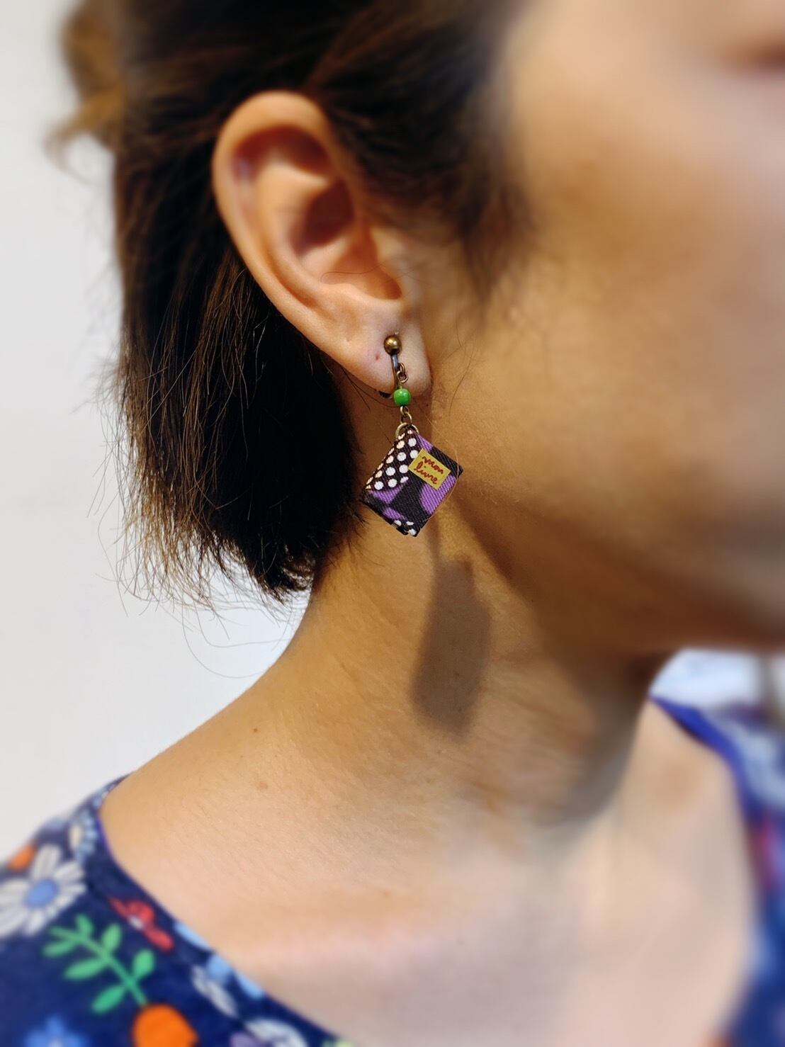 円形モチーフの布本イヤリング【手作り】【1点物】ギフトにも最適