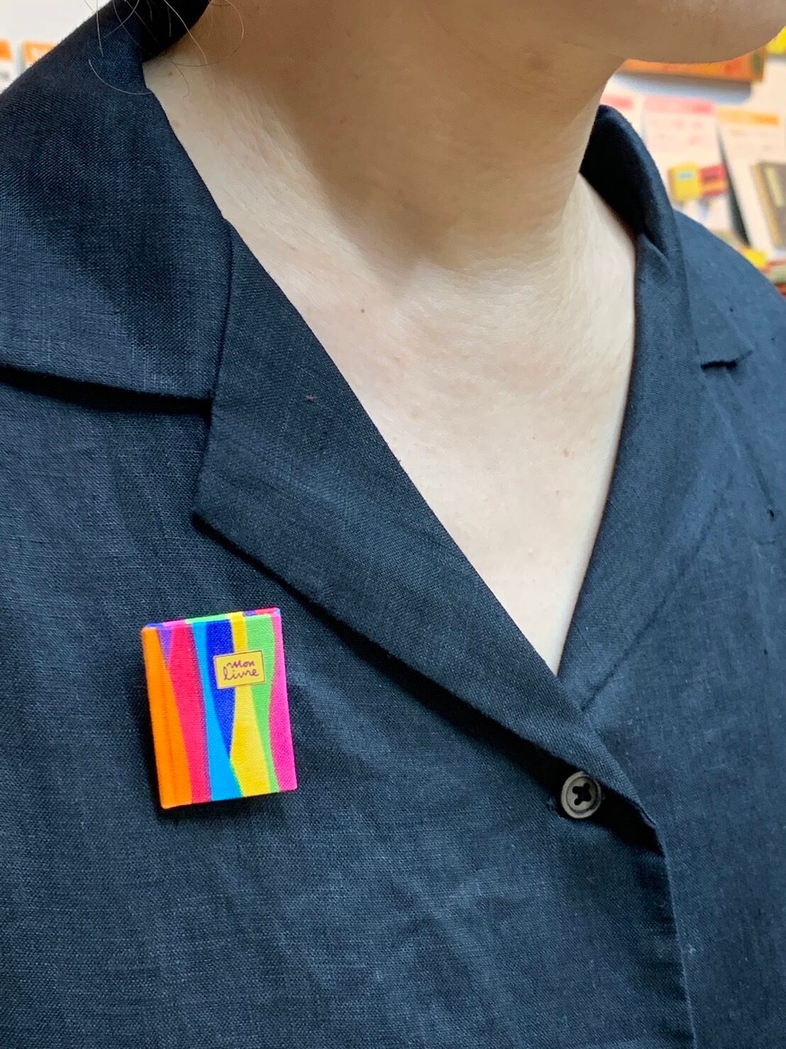 レインボーカラーの布本ブローチ【手作り】【1点物】ギフトにも最適